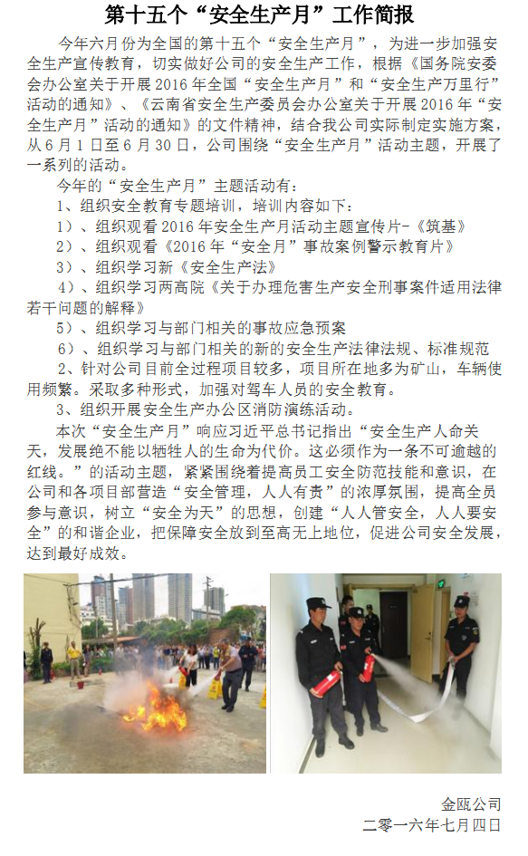 第十五個(gè)“安全生產(chǎn)月”工作簡報(bào)