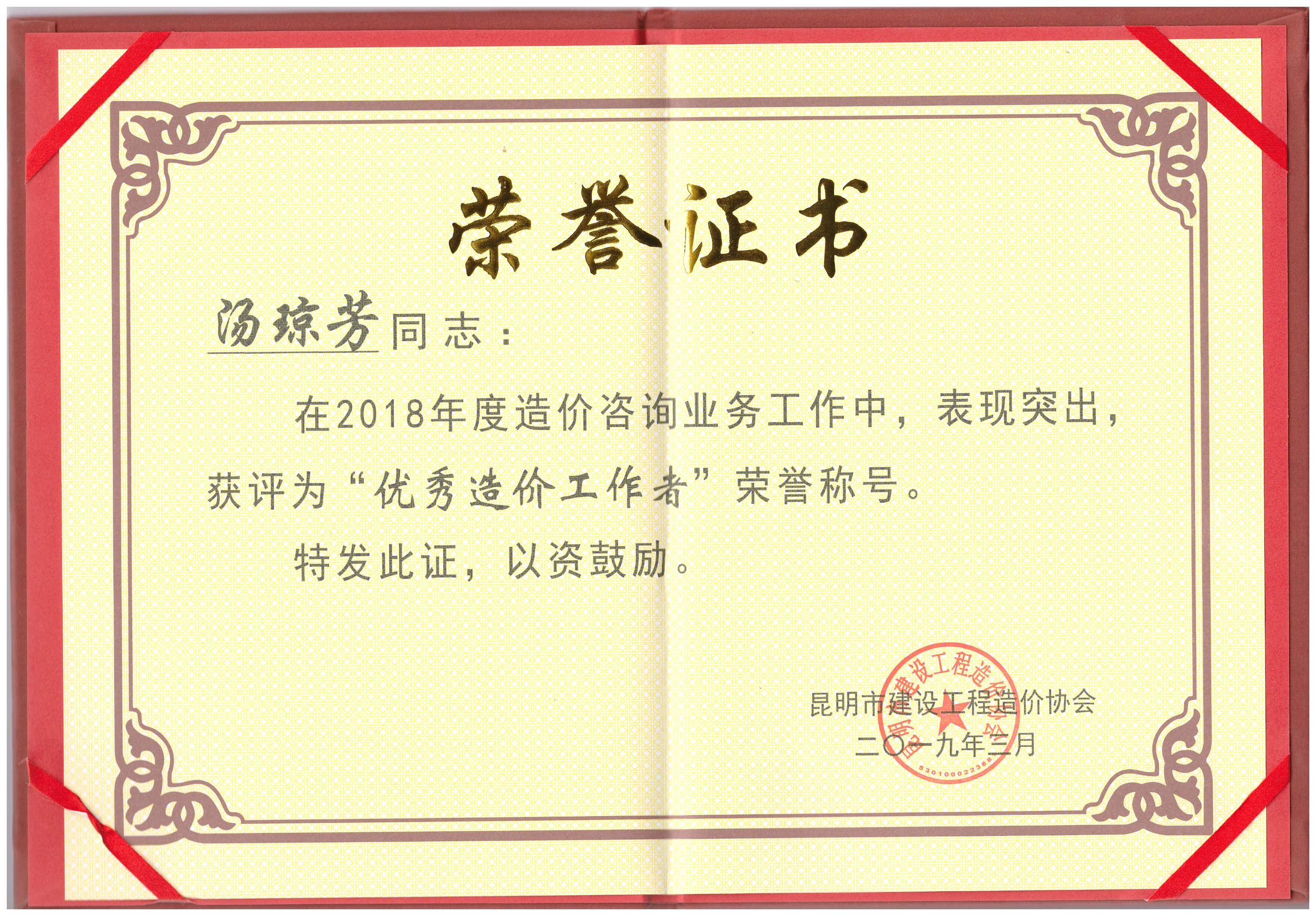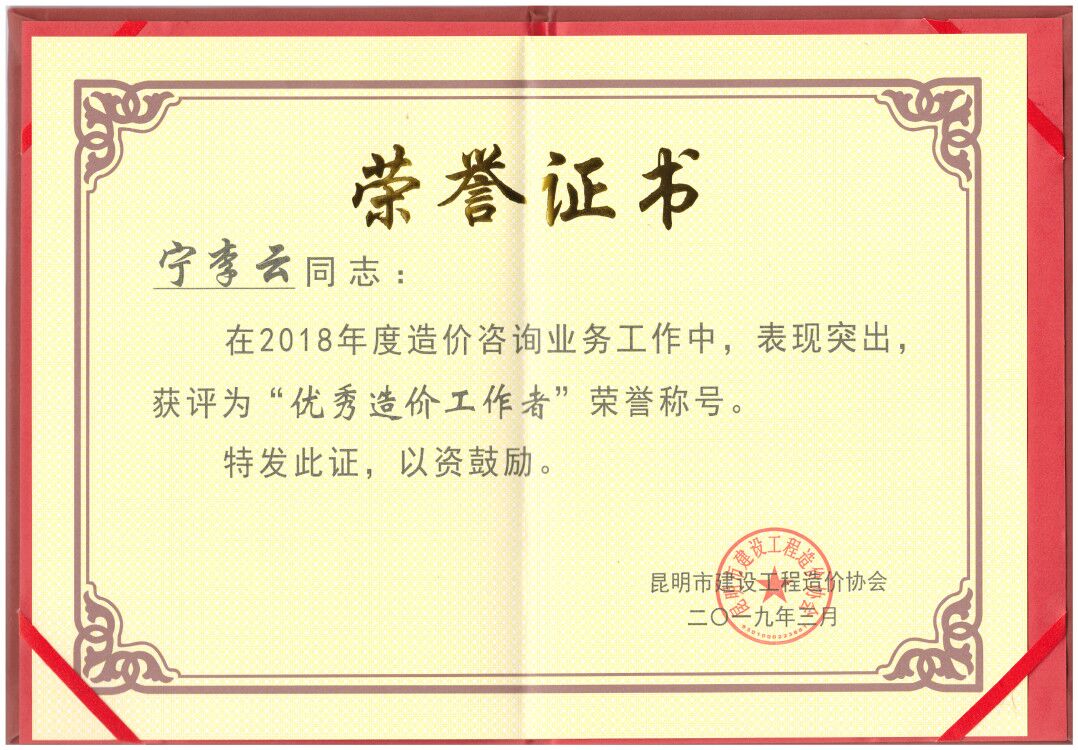 祝賀寧李云、湯瓊芳同志榮獲2018年度“優(yōu)秀造價(jià)工作者”