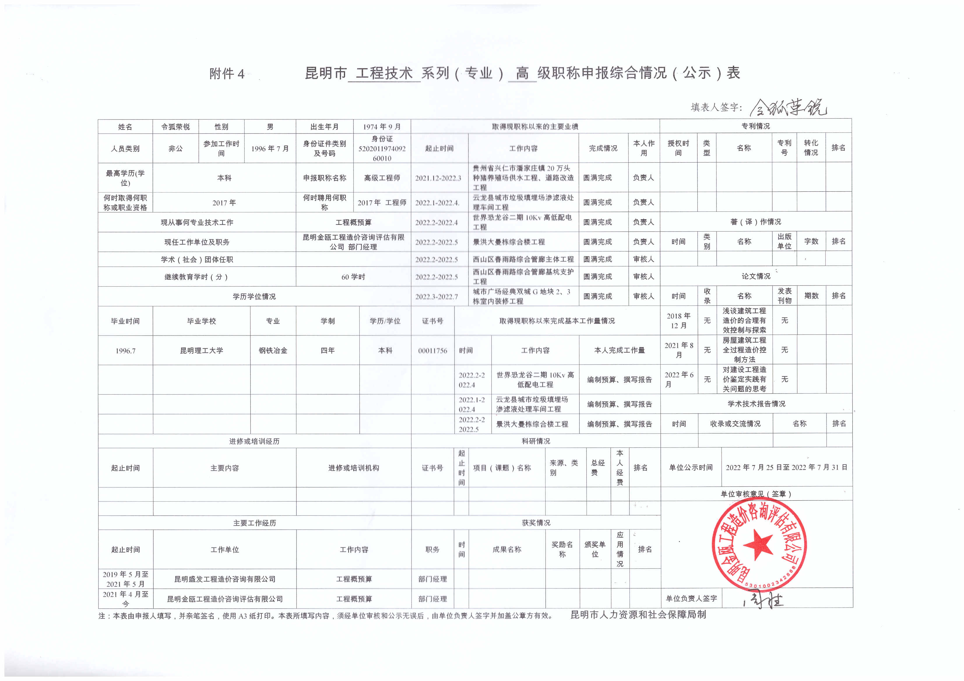 金甌公司關(guān)于2022年專業(yè)技術(shù)高級(jí)職稱申報(bào)評(píng)審材料公示
