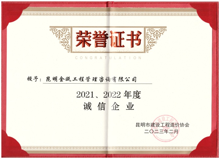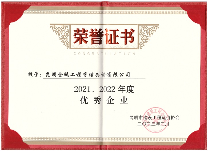 每一項的成績及榮譽,不僅展現出公司愈加成熟的綜合管理水平,也體現出公司里每一份子對待工作愈加的自律與自信,是對自身工作方式的自律,是對自身工作成績的自信。從疫情放開的今年,公司也將繼續秉持高效、高專、高水平的綜合管理能力及凝聚力,讓昆明金甌的人才隊伍愈加壯大!
