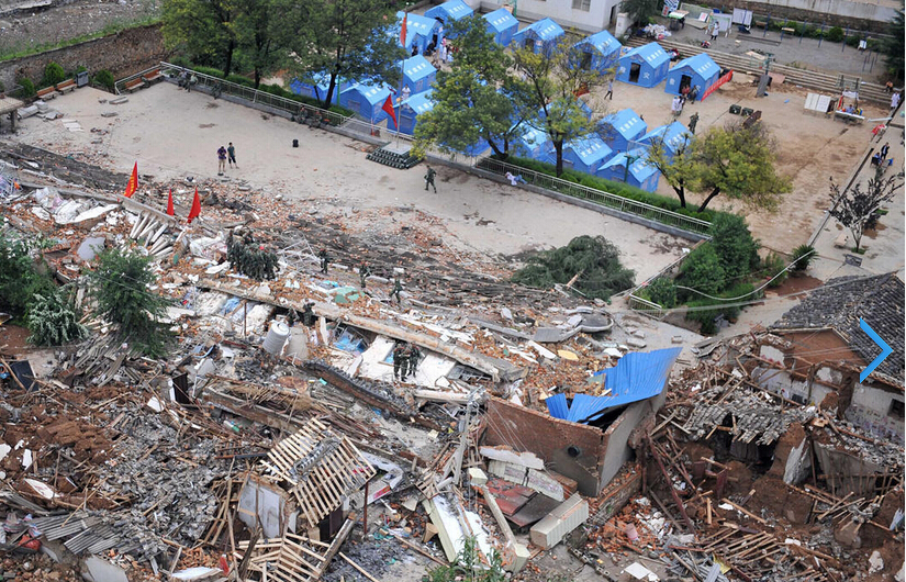 (附圖:這是8月4日航拍的震中昭通魯甸縣龍頭山鎮。8月3日16時30分,云南省昭通市魯甸縣發生6.5級地震。地震發生后,公安部消防局立即啟動地震災害應急響應機制。截至8月4日11時(災后24小時),云南省公安消防總隊已調集937名官兵、141輛消防車、17條搜救犬參加魯甸地震救援,共從廢墟中搜救出66人,其中30人生還,疏散轉移群眾1300余人。——新華社記者 薛玉斌 攝)
