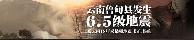 8月3日16時30分,云南省昭通市魯甸縣發生6.5級地震,震源深度12公里。地震給魯甸縣、巧家縣人民群眾生命財產造成重大損失。系云南18年來最強地震,傷亡慘重。據云南省民政廳公布數據,截至昨天(災后72小時):2014年8月6號10點30分,地震造成昭通市魯甸縣、巧家縣、昭陽區、永善縣和曲靖市會澤縣108.84萬人受災,589人死亡,而前晚(災后48小時)這個數字還是410人。災情牽動著每一位中國人的心。